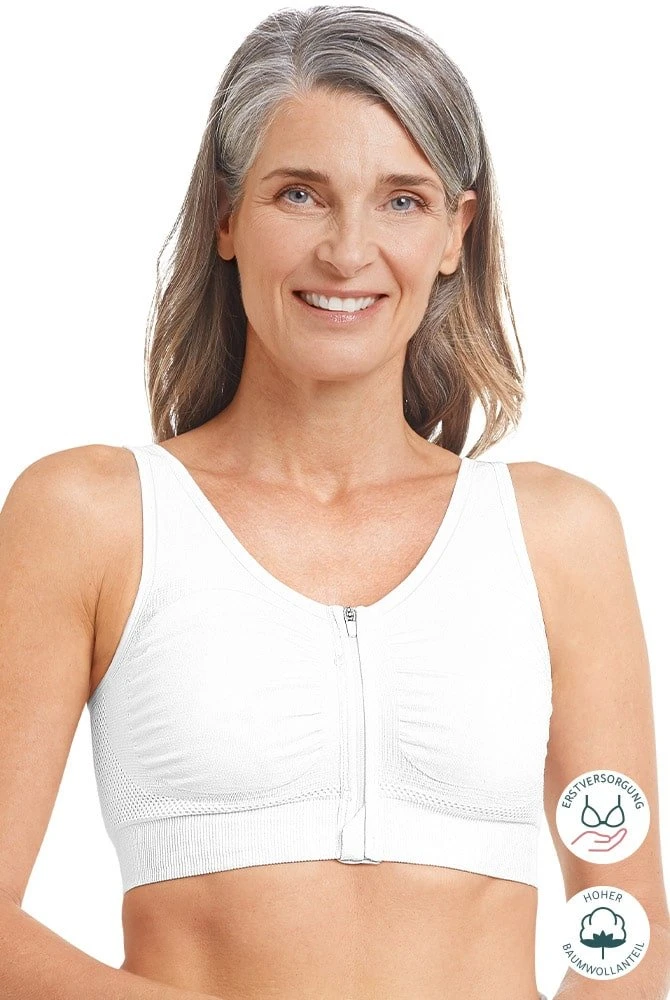 Nach einer Brust OP empfiehlt sich ein Erstversorgungs-BH, der besonders weich und anschmiegsam ist, und durch einen hohen Tragekomfort punktet.