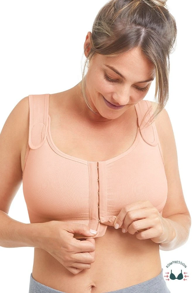 Nach einer Brustoperation wird häufig eine Kompression empfohlen. Ein dafür benötigter Kompressions-BH ist in der Regel auf Rezept erhältlich. Unser nahtloser Kompressions-BH Sina ist durch ein spezielles Vorwaschverfahren für den direkten Einsatz nach einer OP bestens geeignet. Die innovative nahtlose Rundstricktechnologie ermöglicht eine präzise und schnelle Anpassung mit einfachem Zugang zum Operationsgebiet. Kompressions-BH Sina passt sich individuell an Ihre Brustgröße & -form an. Ausgewählte Materialien verhindern Hautirritationen und sorgen für einen angenehmen Tragekomfort. Das Drucklevel liegt im mittleren Bereich. Auch die spezielle Größeneinteilung trägt zu einer perfekten Passform bei. Unser Sina-Kompressions-BH wurde von medizinischem Fachpersonal zum Anlegen für Patientinnen direkt nach einer Operation entwickelt. Sie erhalten ihren postoperativen Kompressions-BH auf Rezept, hier bei MAGIC DESSOUS.