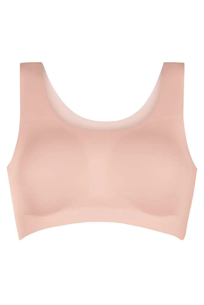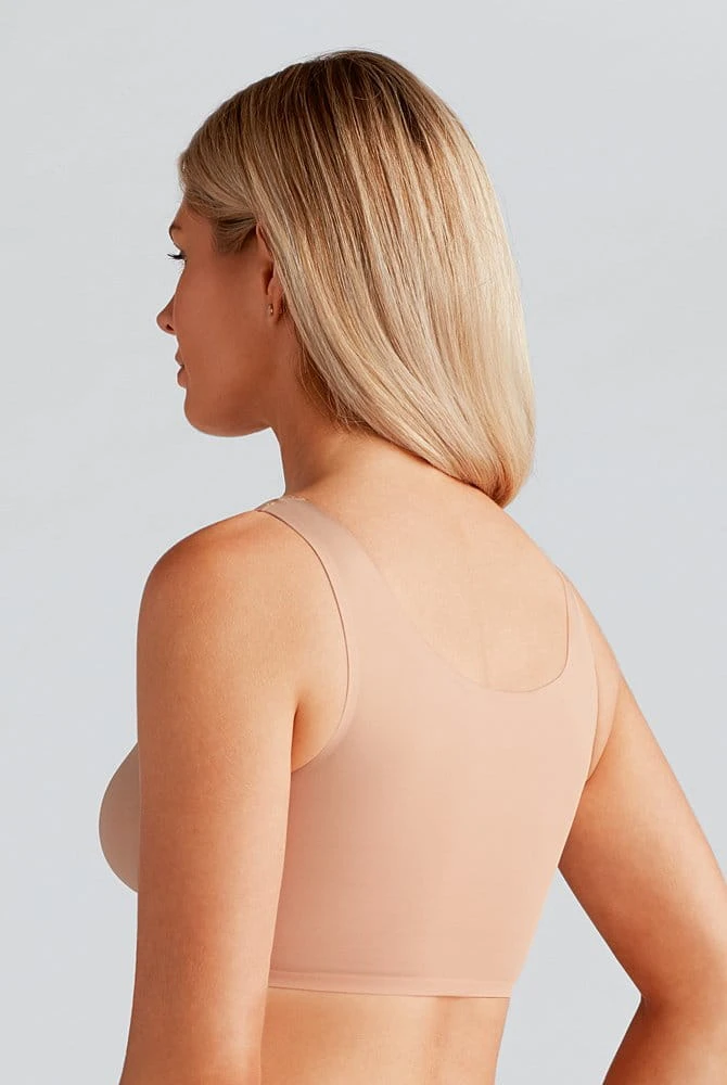 Breites, anschmiegsames Unterbrustband gibt sanften Halt und unterstützt den Sitz einer Brustprothese. Hautschmeichelnd ist der Farbton Rosé Haut.
