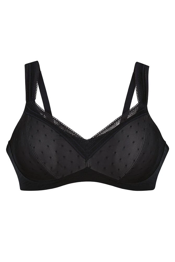 Wunderschön im Design mit zartem Punktetüll überzeugt Prothesen BH Emily von Anita Care. Die weichen bügellosen Cups sind unterlegt mit Microfaser, um Transparenz zu verhindern. Der obere Cuprand ist mit einem Zierstreifen abgesetzt. Weiche verstellbare Träger optimieren die Passform. Die Trägerbreite ist nach Größen gestaffelt. Der komfortable Rücken ist mit Powertüll unterlegt, für stabilen Halt und perfekten Sitz. In die Cups ohne Bügel sind beidseits weiche Prothesentaschen eingearbeitet. Der feminine Look sowie die hochwertige Verarbeitung machen Prothesen BH Emily zu einem besonders empfehlenswerten Begleiter.