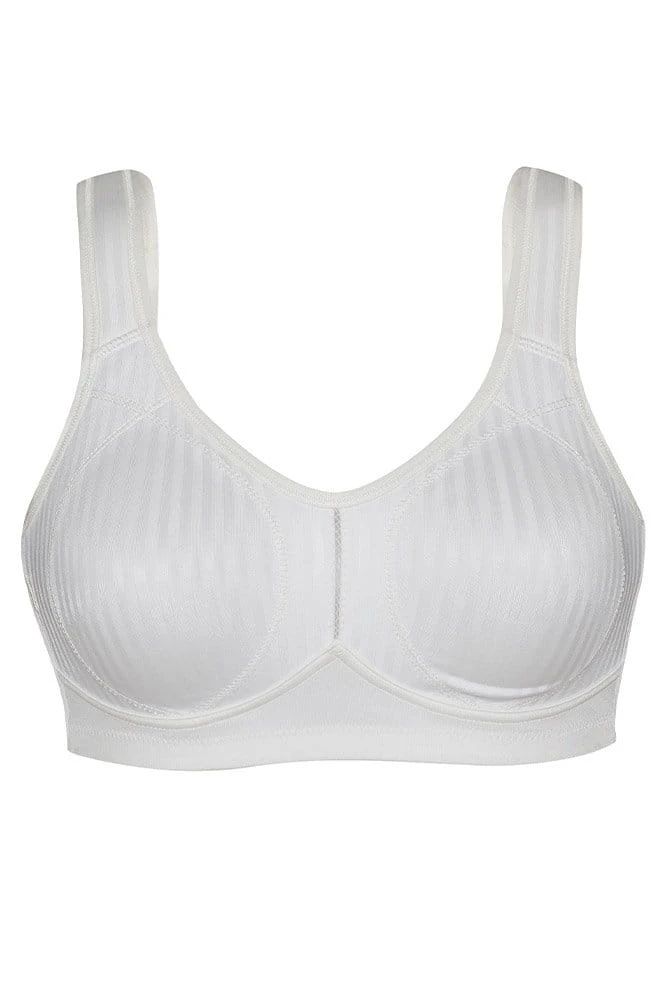 In vielen erfrischenden Farben, klassisch geschnitten, präsentiert sich der Susa-BH Cremona. Der bügellose BH mit seiner eleganten, zart glänzenden Streifenoptik ist ein modisches Highlight. BH Cremona ist speziell für Frauen mit höchsten Ansprüchen an Halt und Sicherheit entworfen. Die hochfunktionelle Schnittführung garantiert auch ohne Bügel eine stützende Wirkung bis Cup I. Unwattierte, vorgeformte Cups ohne Naht im Brustbereich, sowie seitliche Stützblenden gewährleisten zusätzlichen Halt und einen perfekten Tragekomfort. Breite, leicht gepolsterte Entlastungsträger verhindern ein Einschneiden und ergänzen die hervorragenden Trageeigenschaften. Die kleine Ziernaht im vorderen Bereich zwischen den weichen, glatten Cups sorgen für Liebe zum Detail und einen verführerischen Effekt.
